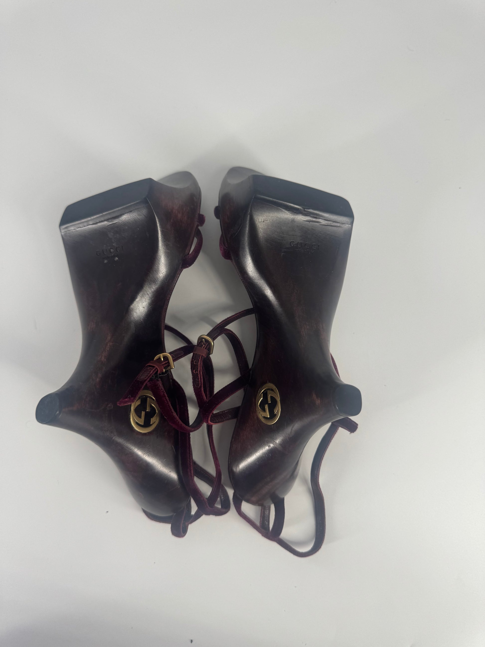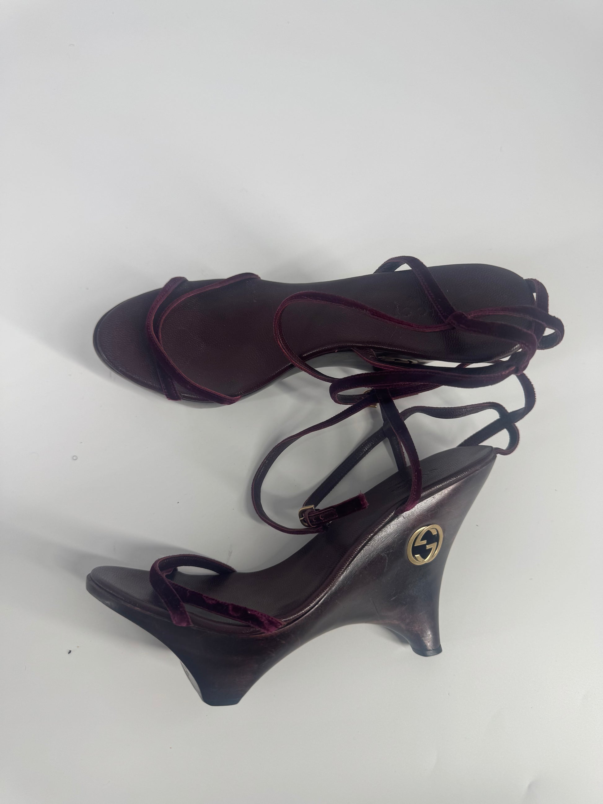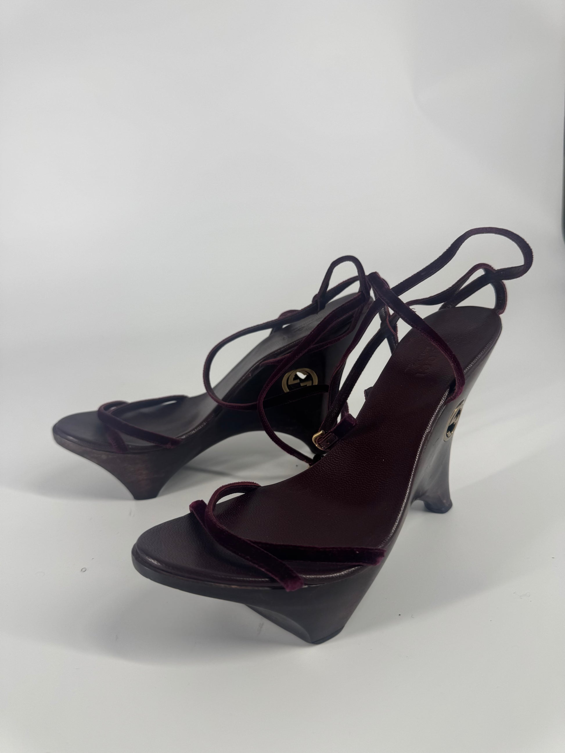 Gucci by Tom Ford 1996 'Geisha' Burgundy Wedges - EU 36-36.5 / US 6-6.5